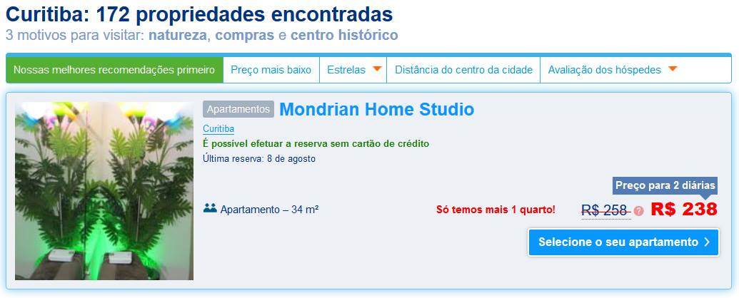 Você pode fazer reservas pelo BOOKING.COM ou pelo AIRBNB